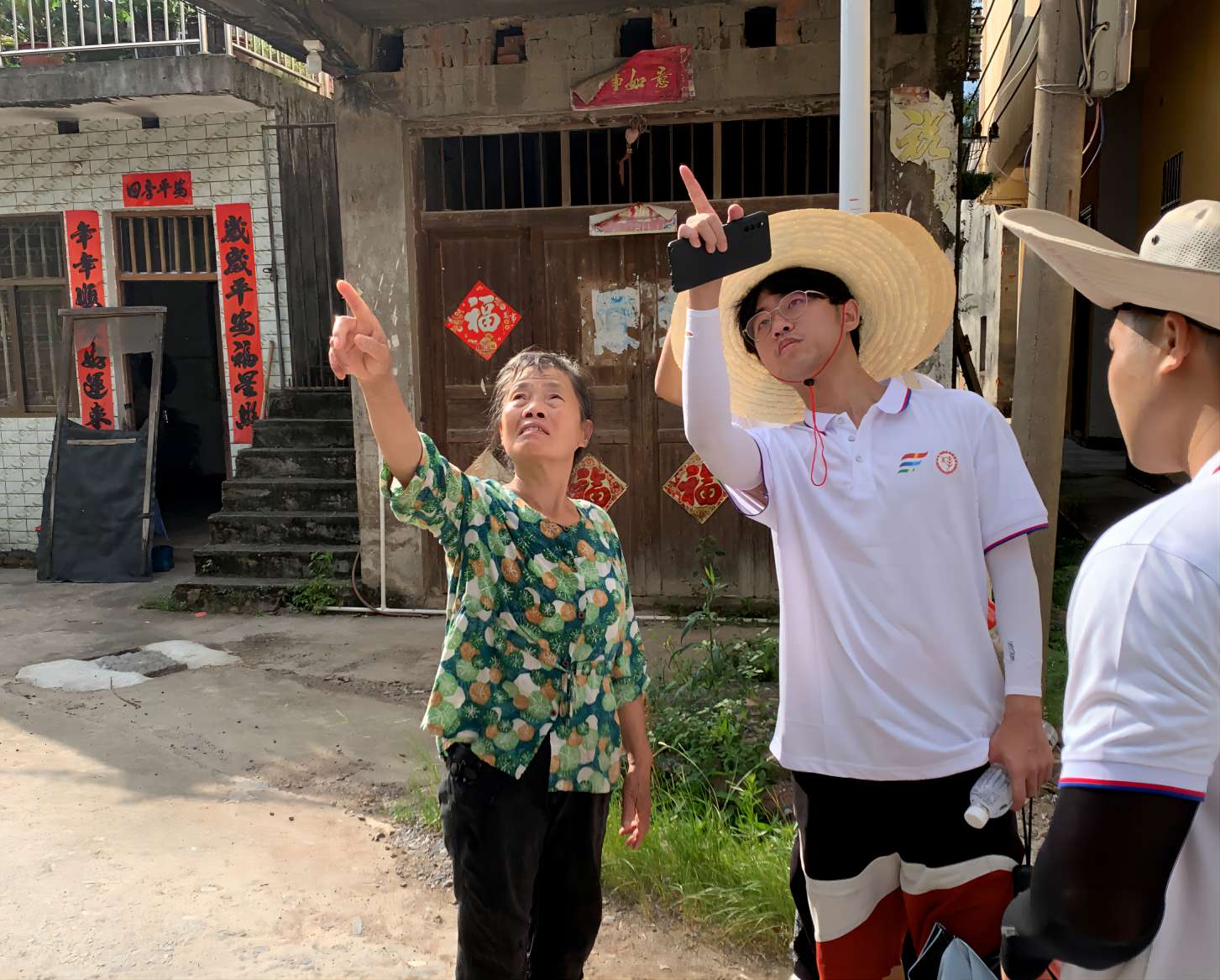 圖為實(shí)踐團(tuán)隊(duì)隊(duì)員與村民聊天。