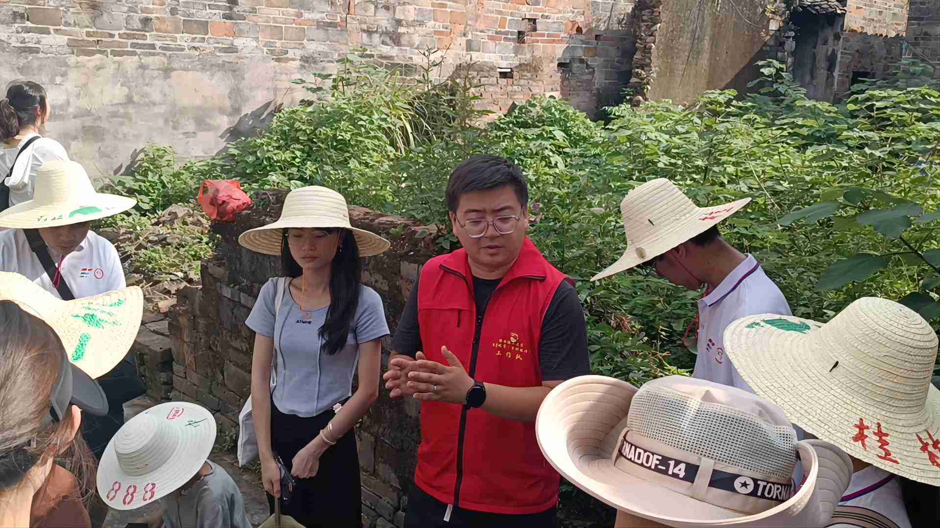 圖為駐村書記為實(shí)踐團(tuán)隊(duì)講解古村目前情況。