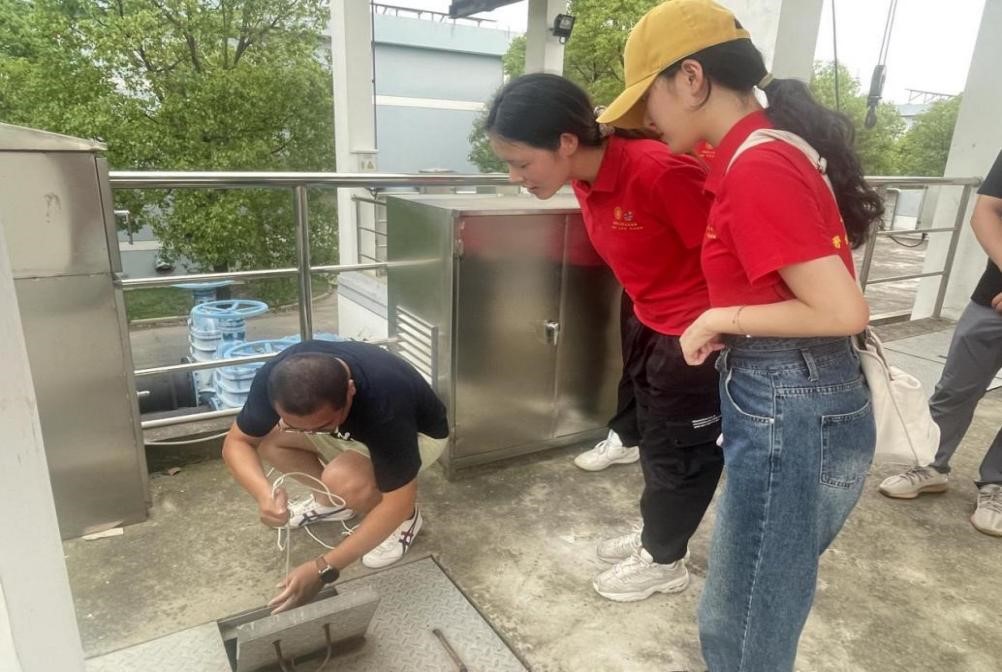 盡管從污水變為可循環水已經經過了眾多工序,面對一開始骯臟的蓄水池,團隊成員還是提出了“能否確保污水處理質量”的疑問。負責人為消除成員心中的疑慮,現場進行了水樣抽查以向實踐團隊成員展示凈水質量,并解釋說明了現有的污水處理標準。負責人指出,污水處理廠的水質是有明確相關要求的,盡管很多人對再循環水有所顧慮,但這種擔心往往是多余的。