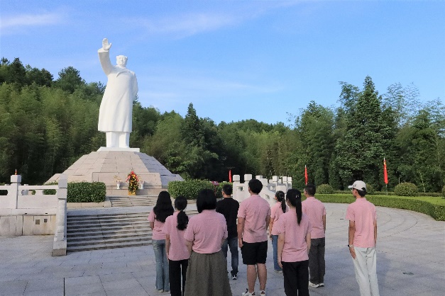 為緬懷偉大革命領袖毛澤東,實踐隊來到了毛澤東紀念園。全體隊員在毛主席雕像前三鞠躬,致以最崇高的敬意。實踐隊深情回憶毛主席為國家、民族所作出的貢獻:創建新中國、締造人民軍隊、創立科學理論……謝清彬老師結合自己的經歷強調說:“一代人有一代人的長征路,要學習毛主席以及共產黨人頑強拼搏的奮斗精神和堅韌不屈的革命意志,不忘初心,砥礪奮進,走好新時代的發展之路。”