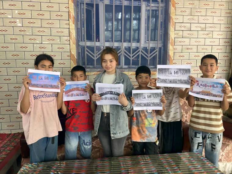 圖為實(shí)踐隊(duì)成員阿瓦妮薩·合力力在跟小朋友們分享民族團(tuán)結(jié)故事