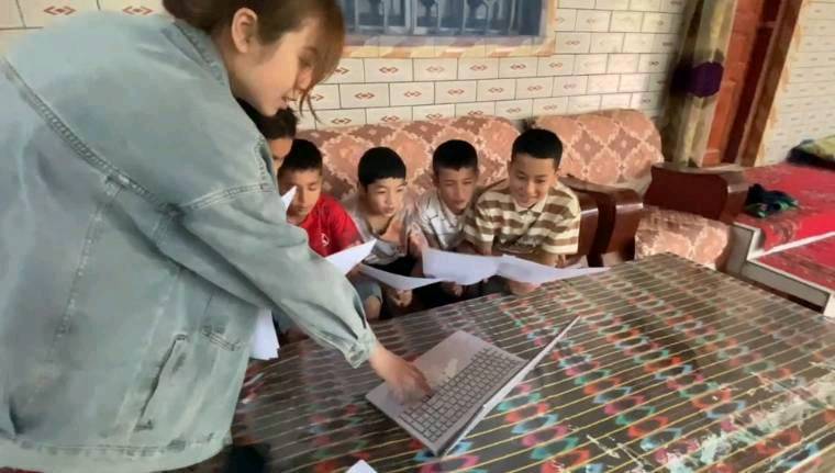 圖為實(shí)踐隊(duì)成員阿瓦妮薩·合力力跟小朋友們合照
