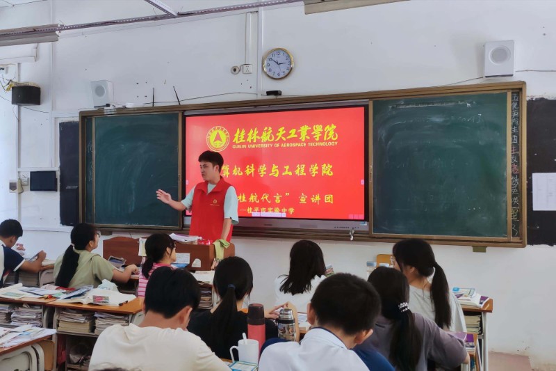 暖暖母校風(fēng),深深校友情。為幫助高中學(xué)子結(jié)合自身學(xué)習(xí)情況、興趣愛好、專業(yè)特長等樹立精準(zhǔn)的大學(xué)目標(biāo),激勵他們?yōu)閴粝氩恍笂^斗,同時擴大學(xué)校知名度,提升桂林航天工業(yè)學(xué)院影響力,吸引更多優(yōu)秀學(xué)子報考桂林航天工業(yè)學(xué)院,2023年7月24日,桂林航天工業(yè)學(xué)院計算機科學(xué)與工程學(xué)院“我為桂航代言”宣講團來到桂平市實驗中學(xué),給準(zhǔn)高三的同學(xué)們開展宣講活動。