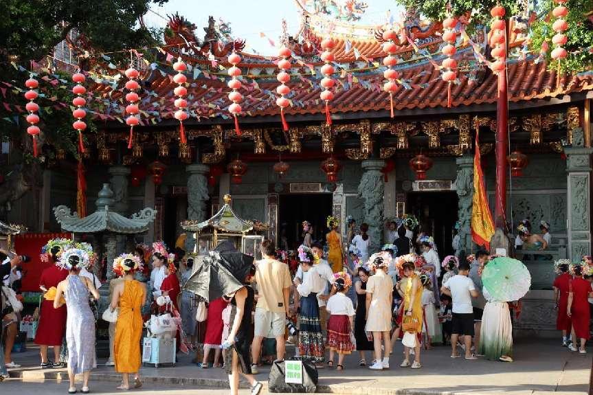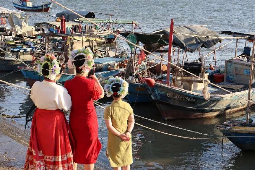 如今,蟳埔女文化已成為蟳埔村的一張獨(dú)特名片,吸引著眾多游客和文化愛(ài)好者前來(lái)探索和了解。“簪花圍”是蟳埔女特有的頭飾,被稱為“流動(dòng)的花園”,“今生簪花,來(lái)世漂亮。”