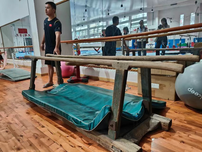 圖為榕江第一代體操教練制作的已有60多年歷史的雙杠。黃杰 攝
