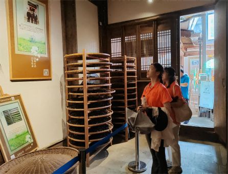 圖為實(shí)踐隊(duì)成員參觀茉莉花茶文化館