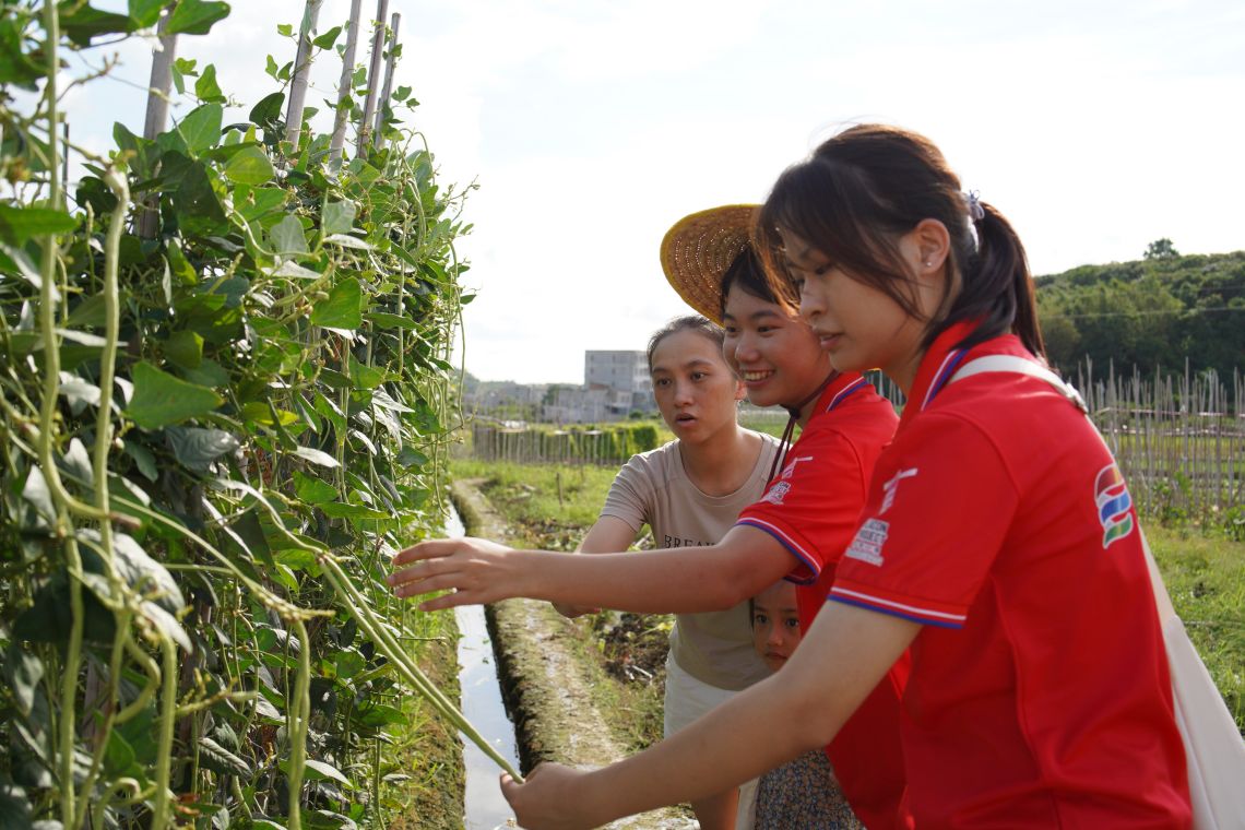 圖為實踐隊隊員與指導老師調研北運菜長豆角。通訊員 王智強 攝