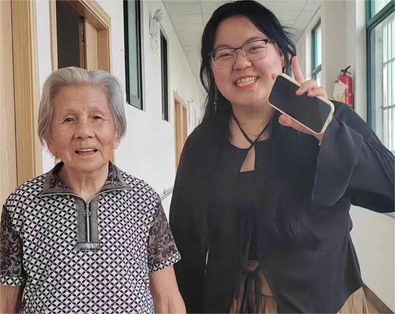 (同學與老人進行交談并合照)