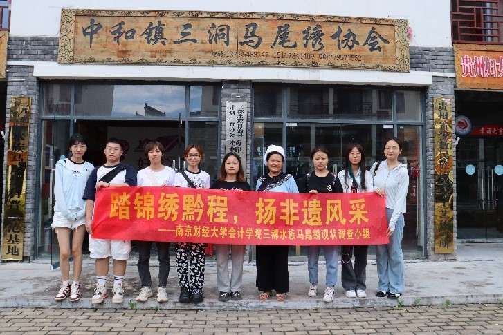 貢獻青春力量,書寫青年擔當。為了解和弘揚非遺文化,2023年7月19日至 21日,南京財經大學會計學院三都水族馬尾繡調研小組來到了貴州黔南三都水族自治縣,深入調查了當地馬尾繡現狀;借助自媒體、文稿等方式宣傳馬尾繡;切身感受馬尾繡獨特的制作過程;并運用專業知識分析馬尾繡的市場運營情況,從而更好地為鄉村振興助力。