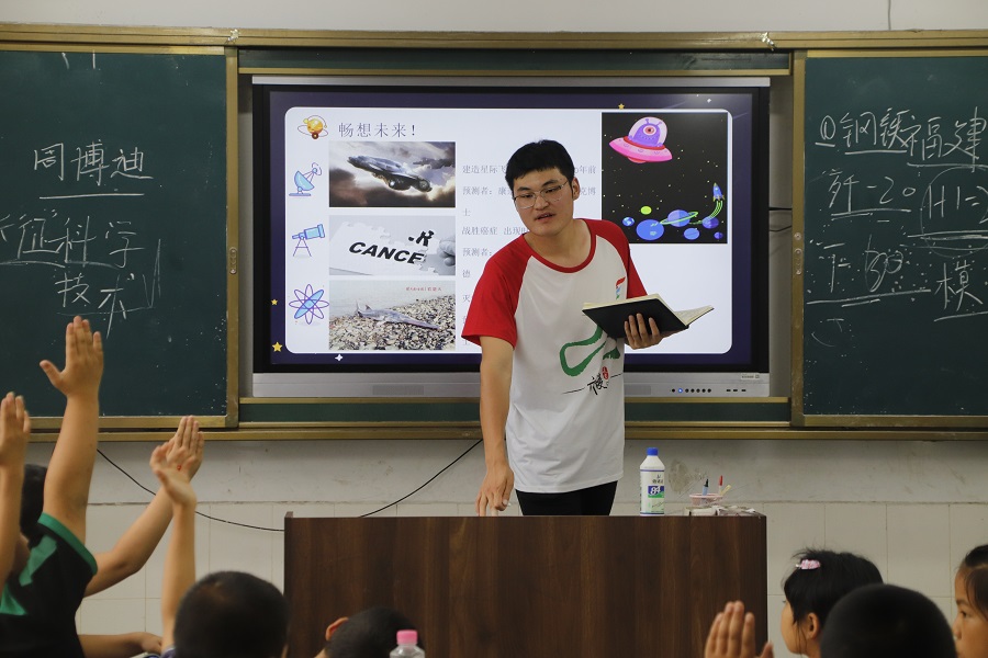 圖為科普課堂上孩子們與“小老師“積極互動(dòng),踴躍回答問(wèn)題 謝晗攝