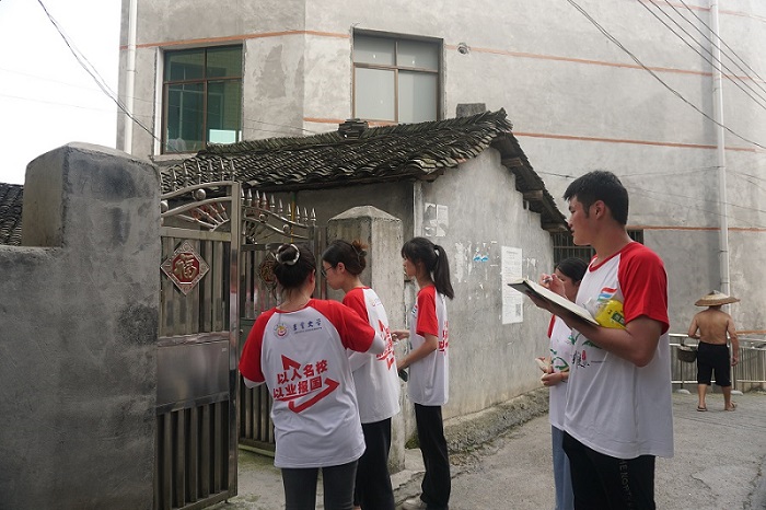 圖為調(diào)研組志愿者走訪(fǎng)入戶(hù)開(kāi)展調(diào)研活動(dòng) 鄧欽文攝