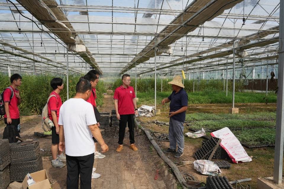 圖為實踐隊員參觀蔬菜種植基地