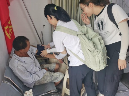 在當?shù)卮逭拇罅ε浜舷拢瑘F隊得以分組開展活動。有的團隊前往矮橋村,有的前往金相村,而另一組則前往雙橋村進行入戶走訪。一路上,蜿蜒曲折的山路讓他們初窺村民求醫(yī)問藥的不便。當志愿者們真正走進這些獨居的爺爺奶奶家中,又感受到了一種莫大的震撼:這些爺爺奶奶的房子多是由早期的土房木房改建,條件艱苦;加之他們上了年紀,身體或多或少有些隱疾;平日又缺乏子女的陪伴,生活難免單調乏味。但志愿者所看到的爺爺奶奶們雖然面臨各種各樣的困難,卻大都保有樂觀向上的生活態(tài)度,他們也許過得很不容易,但他們總能苦中作樂,于不變的日常當中窺見快樂。