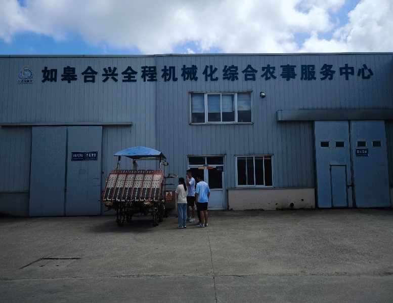 而后,探訪了如皋市白蒲鎮橋口村和錢園、姚家園、朱家橋、蔣殿、黃行、合興等社區。其中,成員們受邀參觀了如皋合興全程機械化綜合農事服務中心,近距離接觸了久保田旗下的聯合收割機、插秧機、拖拉機等,對農業機械化帶來的便利有了進一步認知。并有幸在國家信息農業工程技術中心試驗示范基地參觀了南京農業大學改造的農業機械,在與相關技術人員交談后,了解了農機改裝后的節能性、便利性。探訪途中,團隊成員就農業機械化現狀,與當地農民交談,了解了政府、社區、個體為踐行雙碳所付出的努力,也了解了農機的工作種類和各項性能,令人受益匪淺。