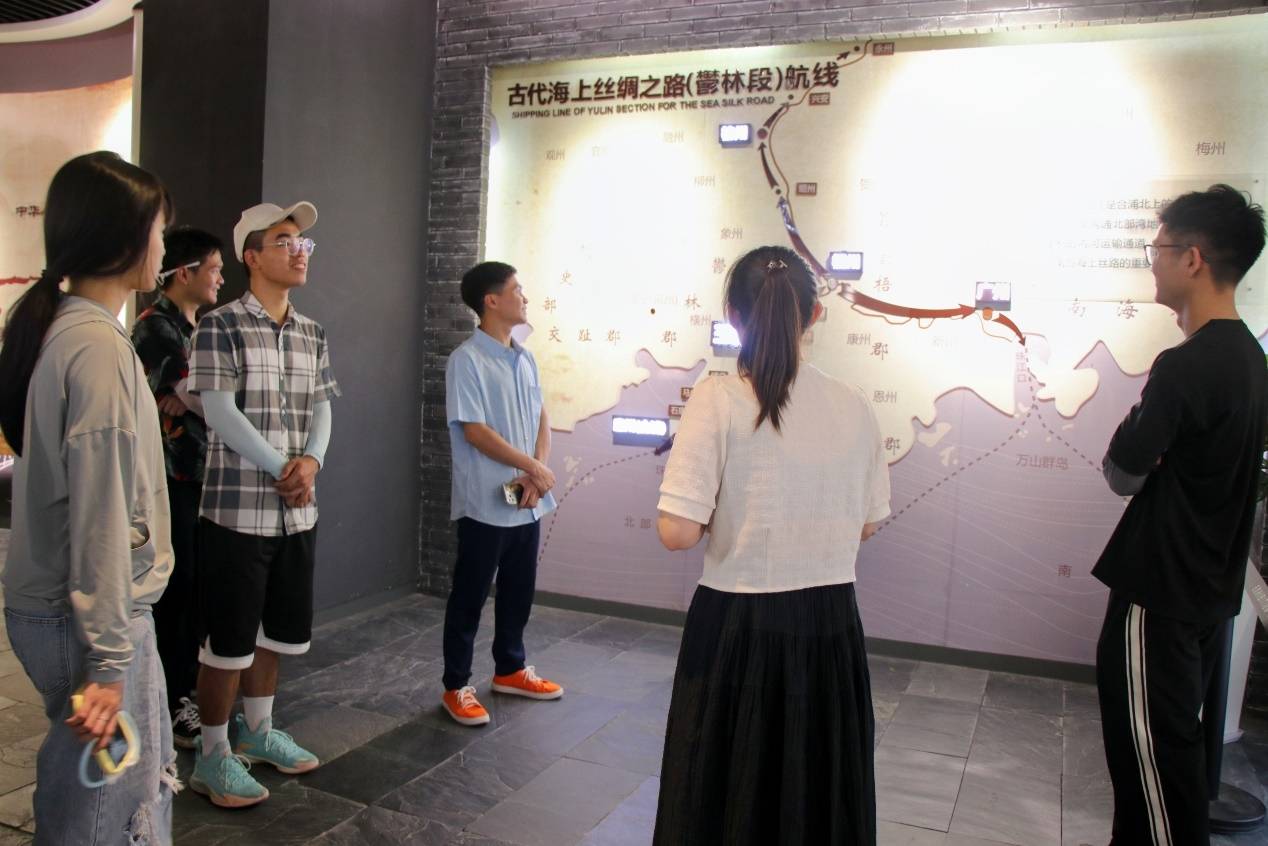 圖為實踐團成員在玉林市城市規劃館參觀古代海上絲綢之路航線 多彩大學生網通訊員 韋明練 供圖