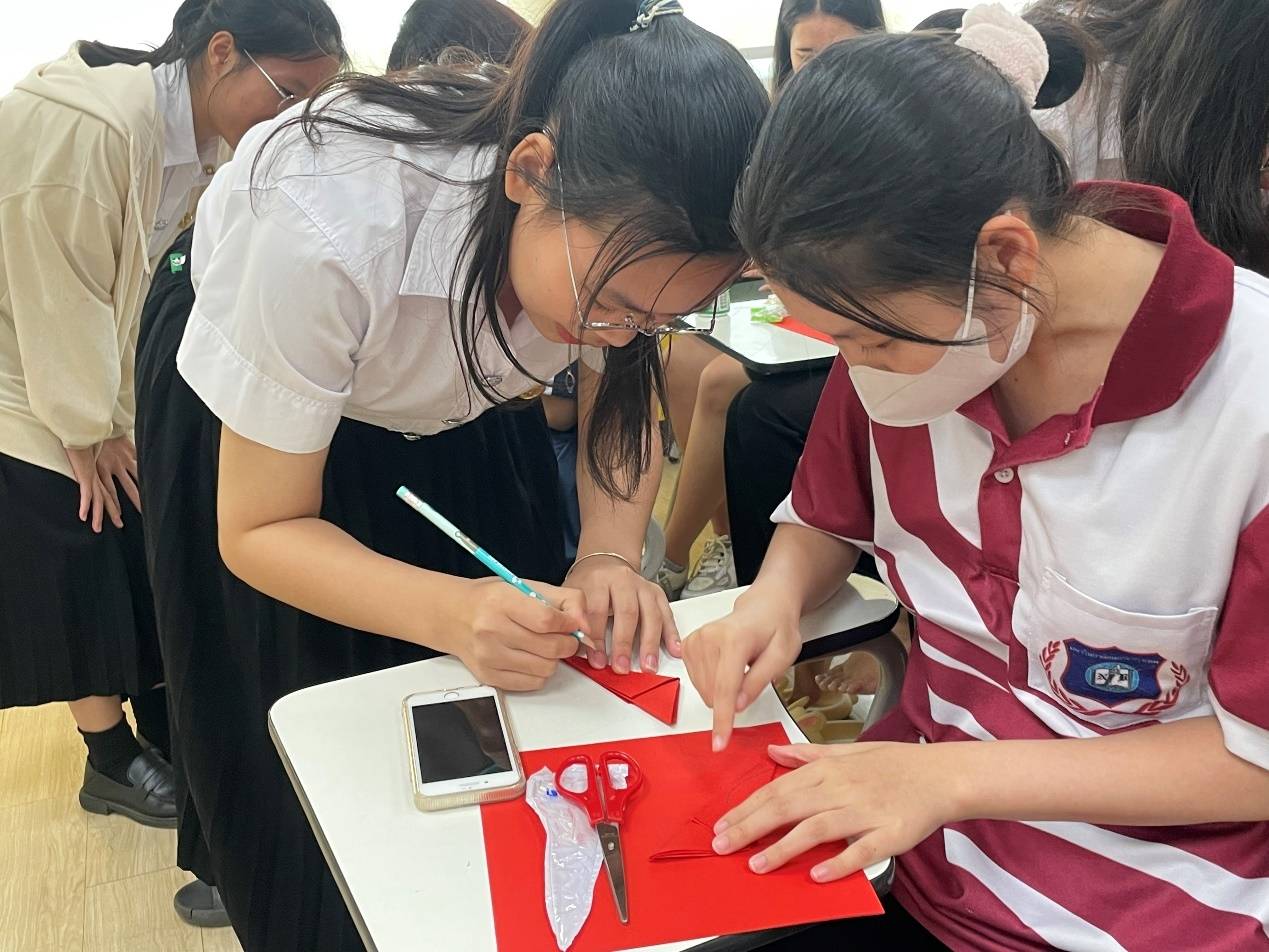 圖為實踐團成員教授泰國學生剪紙。多彩大學生網通訊員 柯紫月 供圖