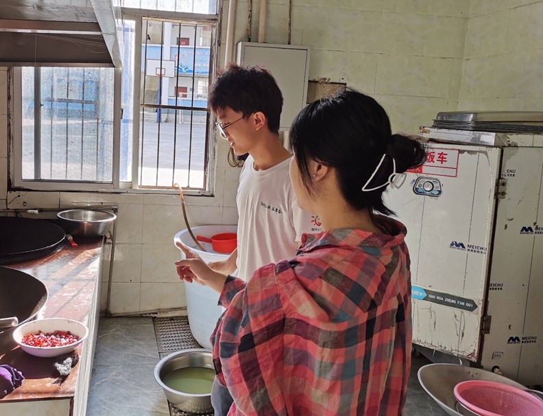 圖為小組成員對詩妤小學廚房設置進行調研。 胡祝誠。