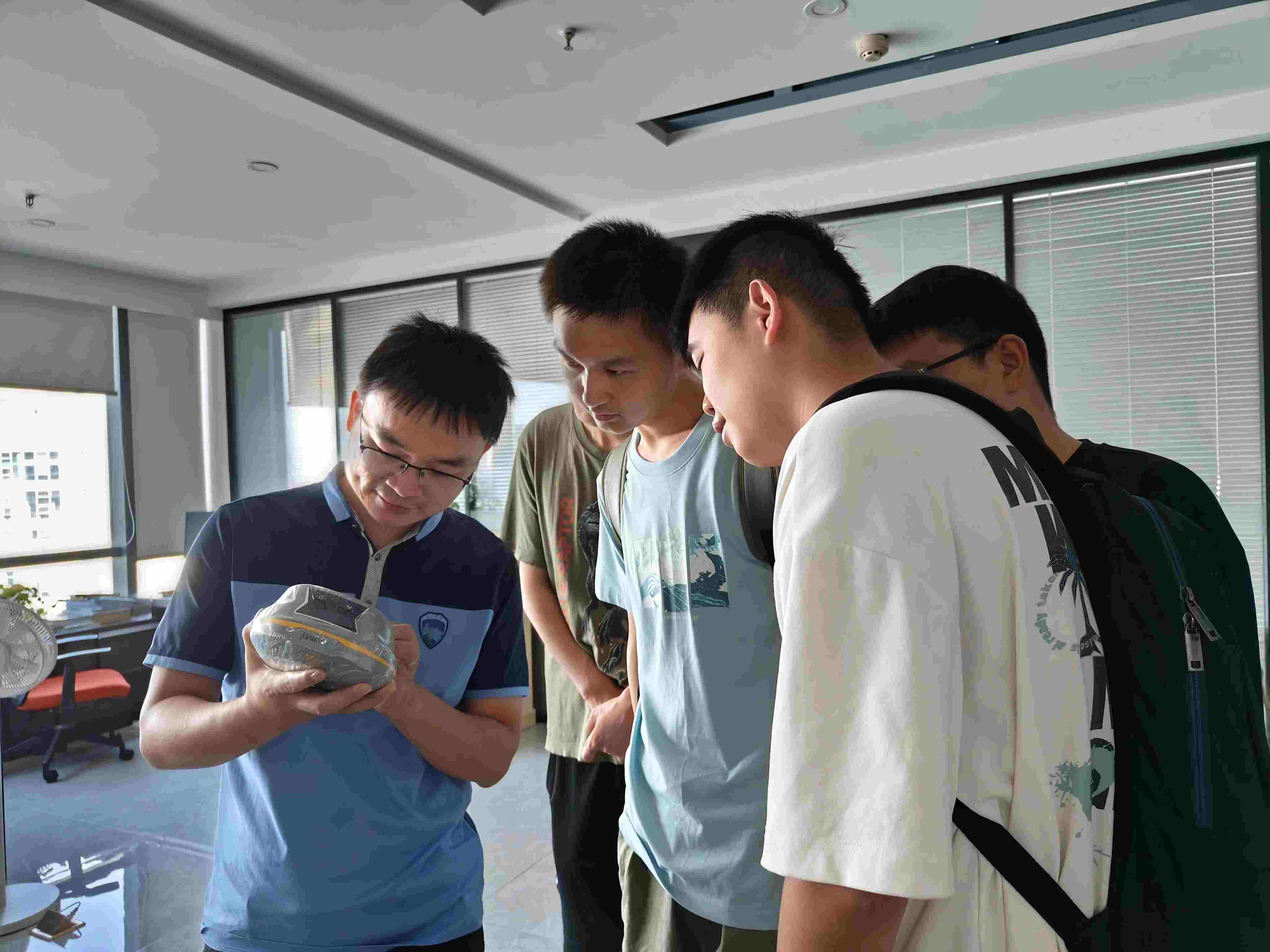 隨后,技術(shù)人員通過實物產(chǎn)品為實踐隊員詳細講解了華測最新RTK、激光雷達、無人船等產(chǎn)品工作原理及優(yōu)勢,深入介紹產(chǎn)品研發(fā)理念及其行業(yè)應用,便于實踐隊員了解當前市場上前沿的導航定位產(chǎn)品,為“挑戰(zhàn)杯”項目提供新思路。