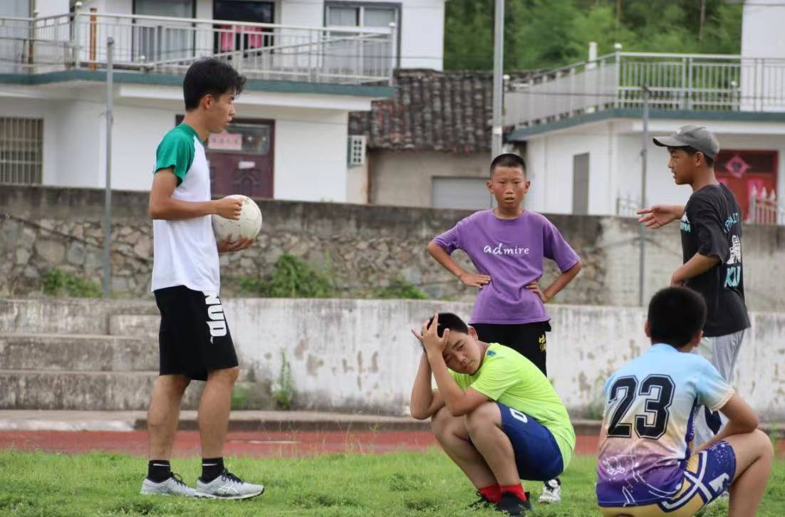 注重細節,追求體育課堂多樣化7月4日,團隊正式進入日常化體育教學階段。操場上,孩子們被分成小班,由不同的志愿者帶領進行羽毛球、足球、籃球、手球、武術、田徑和拉丁舞教學。志愿者采訪到參加此次夏令營的李一木同學,他表示自己原來學過一點足球,但村里并沒有開設興趣班,所以幾乎沒有人會去學習。然而,志愿者們會根據孩子們的實際情況進行耐心教學。李一木表示希望來年仍有大哥哥和大姐姐們來帶領他們學習。足球老師楊新宇、陶天傲對孩子們的努力感到十分感動,同時也認識到自己能力的有限,希望能夠給孩子們傳授更多知識。
