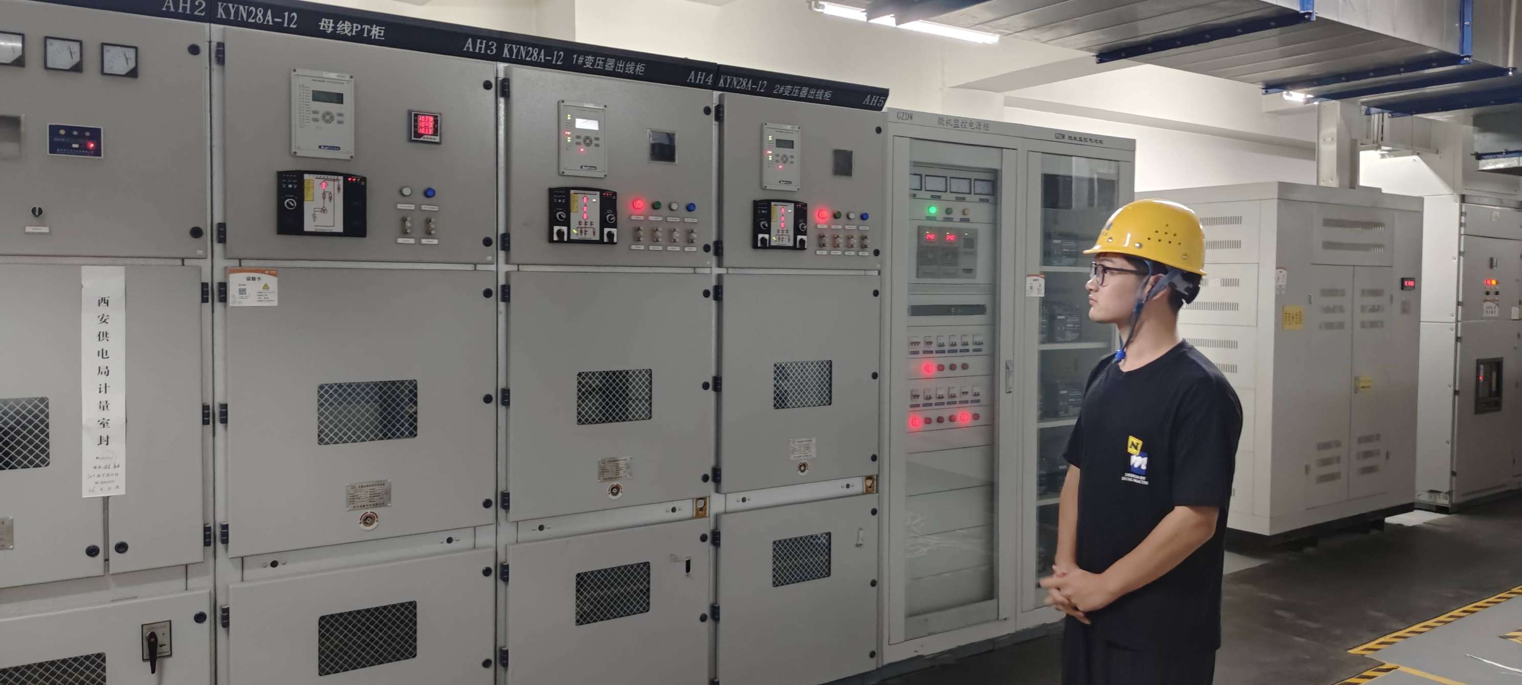 圖為李延杰參觀配電裝置