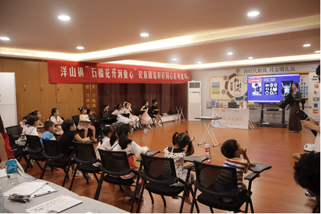 圖為團(tuán)隊(duì)成員楊佳同學(xué)為小朋友們講解有關(guān)布依族的民族課程