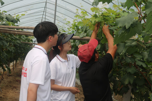 當日上午,我們來到了紫荊村黨群服務中心,向村主任詢問了有關葡萄種植、儲藏、加工、出售,以及年輕人是否流失等問題。村主任詳細解答了我們的問題,比如村子共種植2萬畝葡萄、儲藏葡萄的溫度在0~1℃,儲藏期在3~6個月、每畝葡萄可以讓農民年凈收入增加5元至1萬元,近年間陸續開通了各種銷售渠道,電商,批發,直播帶貨等等。同時,村主任提到村子里的年輕人都遠離家鄉到外地打工,做葡萄產業的只有老年人。村主任希望能夠建立特色產業以吸引年輕人回鄉發展。隨后,葡同凡響實踐團來到廬江縣同大鎮永安村冷庫和包裝車間,共同參觀了該冷庫的巨大規模。通過介紹,我們了解到葡萄冷庫主要用于葡萄貯藏,其通過制冷設備降溫,同時通過控制庫內的溫度濕度,保證環境適合葡萄貯藏,以達到延長葡萄保質期的效果,便于后期葡萄酒的制作。該冷庫于今年上半年剛剛完工,與下半年投入使用,是同大鎮邁開葡萄酒產業創業的開始。