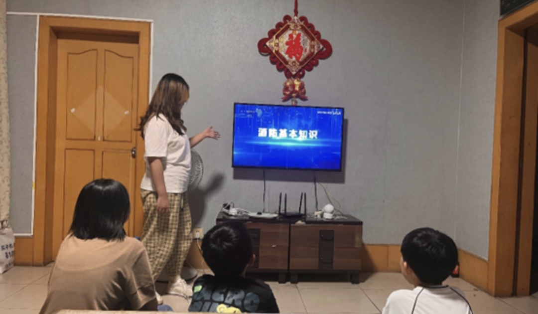 首先,實踐團隊成員南佳晨從消防安全的基本知識入手,向小朋友們介紹了如何在災難中正確保護自己并逃生,分別采取了講解,觀看視頻,實地演練的方式讓小朋友們感受并且學習相關技能。取得了良好的效果,讓孩子們在樂趣與知識的結(jié)合中學習消防技能。