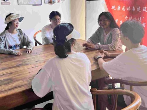 實地調(diào)研后,團隊成員與指導(dǎo)老師牛欣然開展深度討論,牛欣然強調(diào)要注重本土植物的適配性、設(shè)計方案與獨山村乃至整個開化縣的鄉(xiāng)村文化的協(xié)調(diào)性。