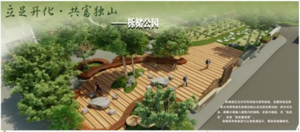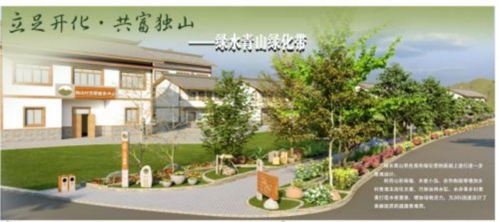 團隊就地取材,另辟蹊徑,對規劃設計方案進行亮點剖析,最終以“共富獨山”為主題,將鄉村農具、根雕元素融入庭院內的矮墻、花架與墻面,用“低成本”,實現“高質量效果”。依據原有菜地進行認知菜園設計,增加場地趣味性。