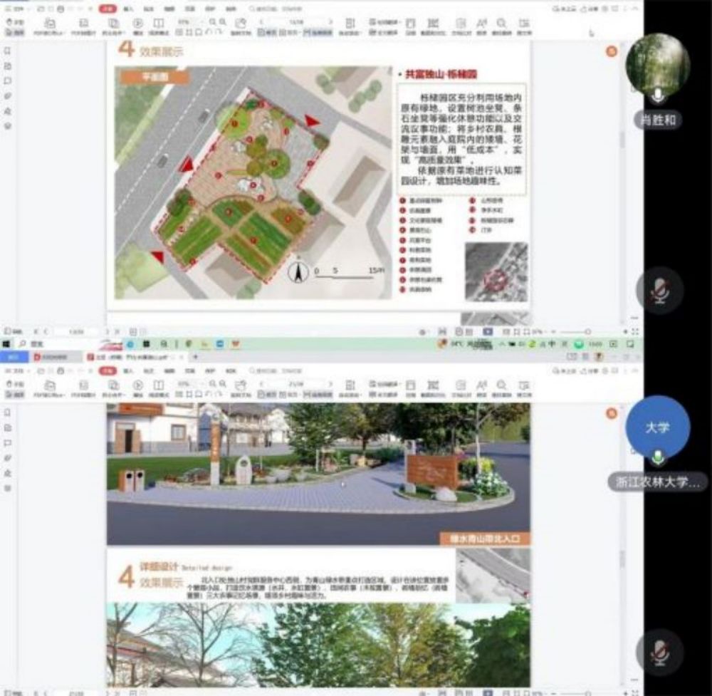 7月21日,團隊與指導老師李健、肖勝和針對點位設計方向以及設計主題展開討論,最終確定將獨山村兩塊綠地分別打造為“櫟櫧(立足)園”和“綠水青山帶”。