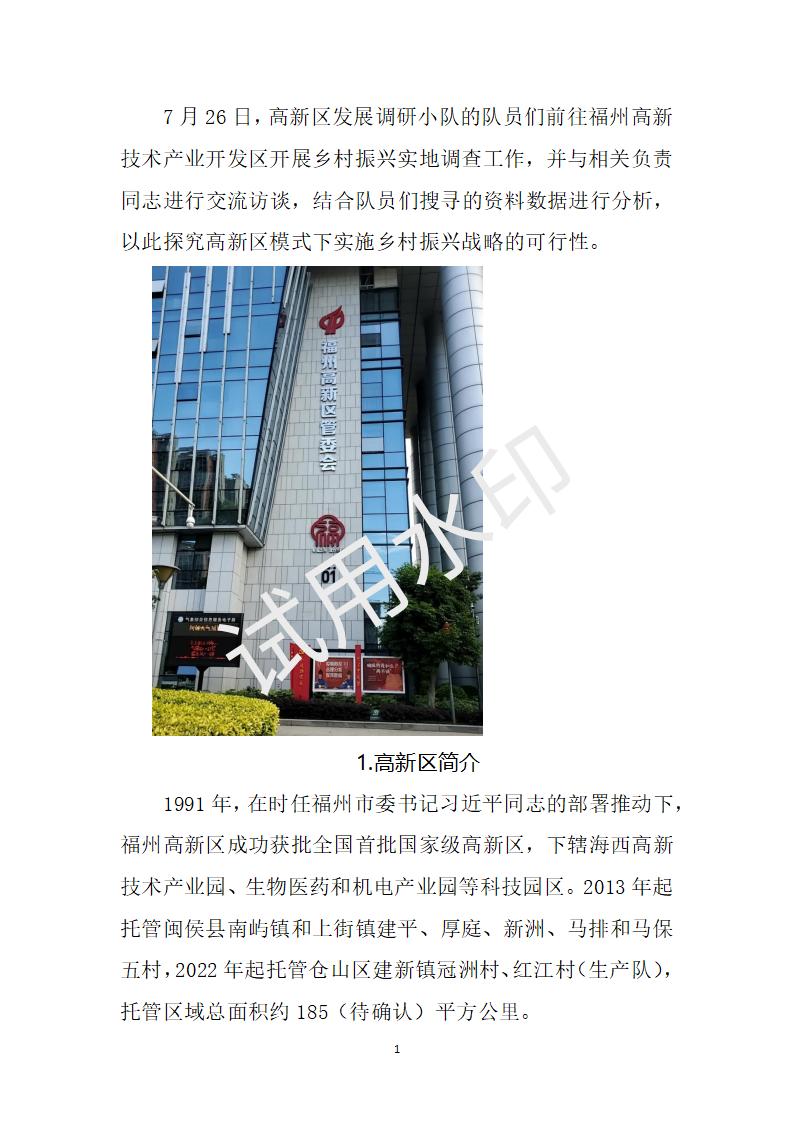 探究高新區模式下的城邊鄉村振興發展——高新區發展調研小隊前往福州高新技術產業開發區開展實地調查