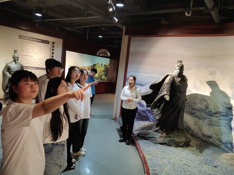圖為講解員為志愿者們講解觀滄海。鄭子睿 供圖