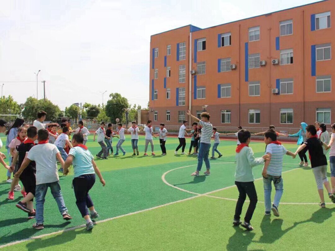 圖為實踐團隊在鐘橋社區支教,體育課上實踐隊員與學生們在做趣味游戲。 李靜媛 攝