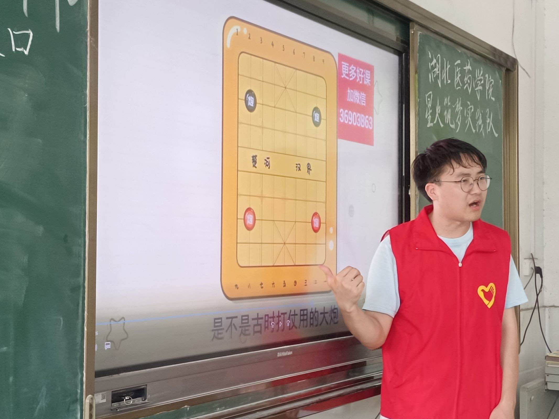圖為小紅老師向?qū)W生們教授象棋知識(shí)。
