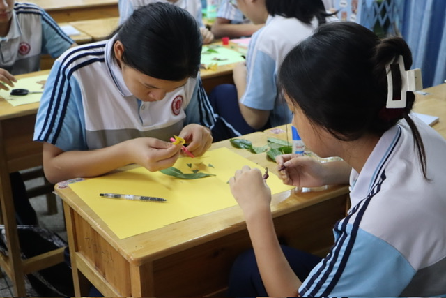 本次“流墨繪源,盛色一夏”夏令營期間,華南師范大學書畫協會流墨實踐服務隊于7月20日舉辦了主題為“一花一葉間,巧手拼世界”的樹葉拼畫活動,