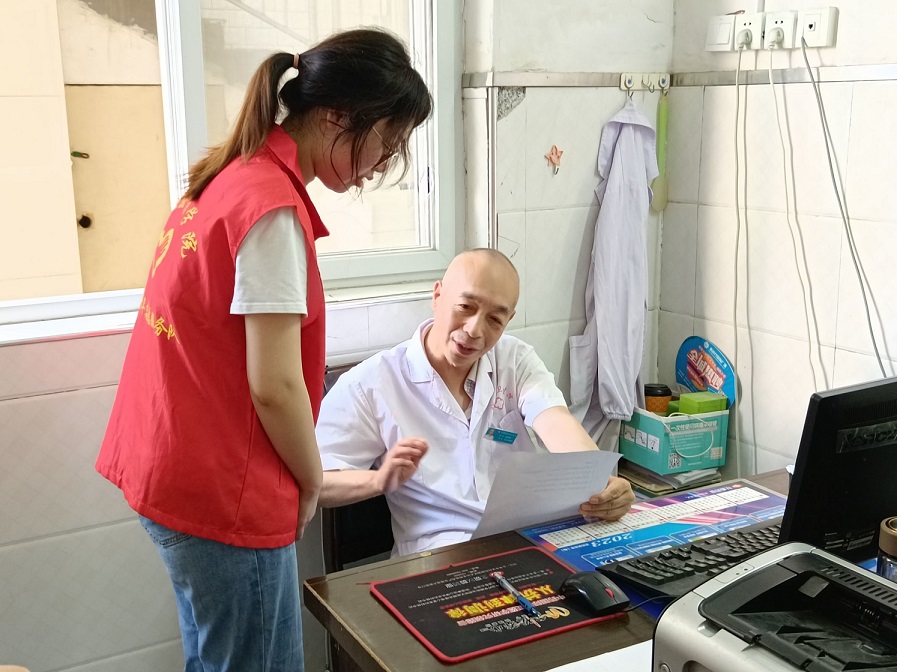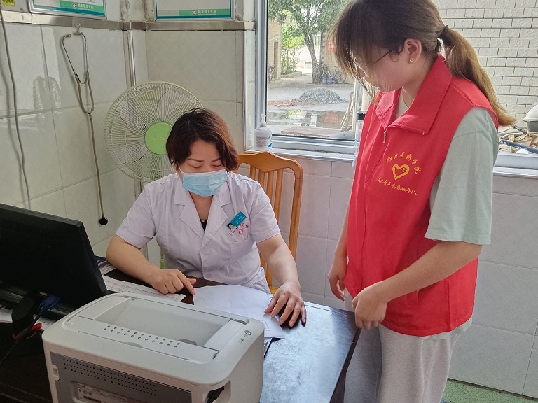 圖為楚漢青年志愿隊隊員到衛生院與醫生交談。通訊員 黎運鋒 攝
