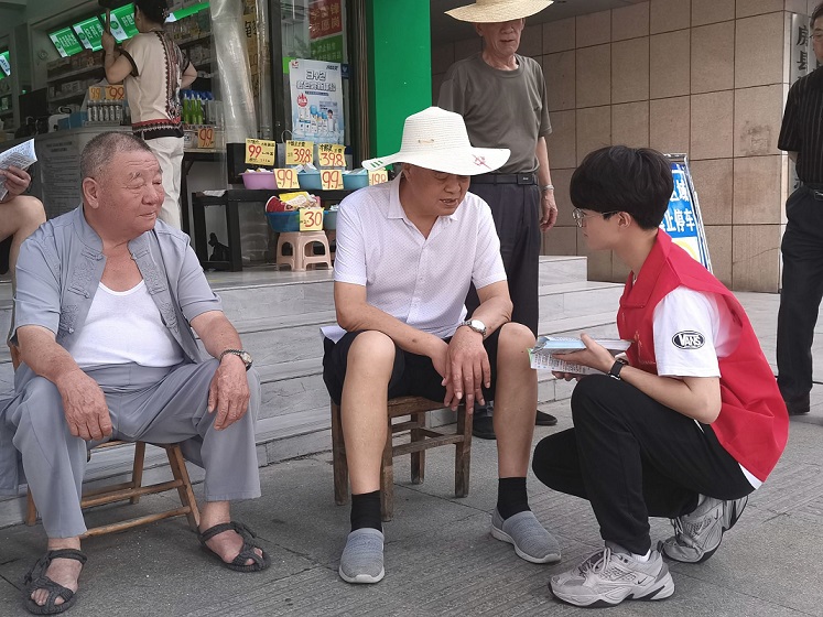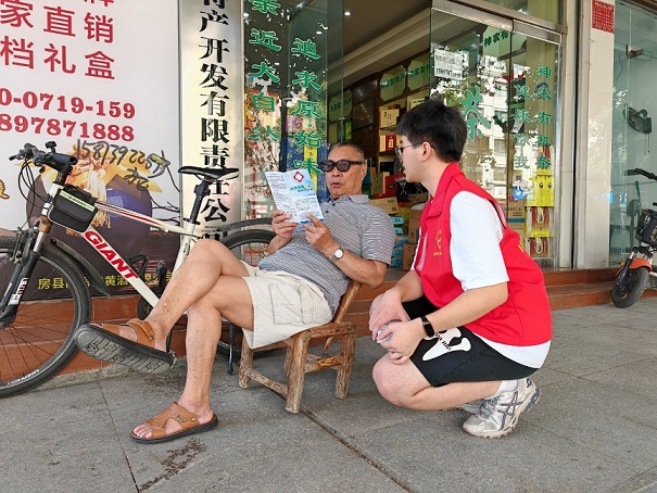 圖為楚漢青年志愿隊隊員正在分發與科學就醫相關的問卷。通訊員 黎運鋒 攝