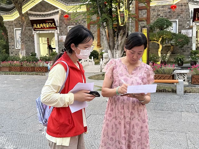 圖為楚漢青年志愿隊(duì)隊(duì)員分發(fā)科學(xué)就醫(yī)問卷。通訊員 黎運(yùn)鋒 攝