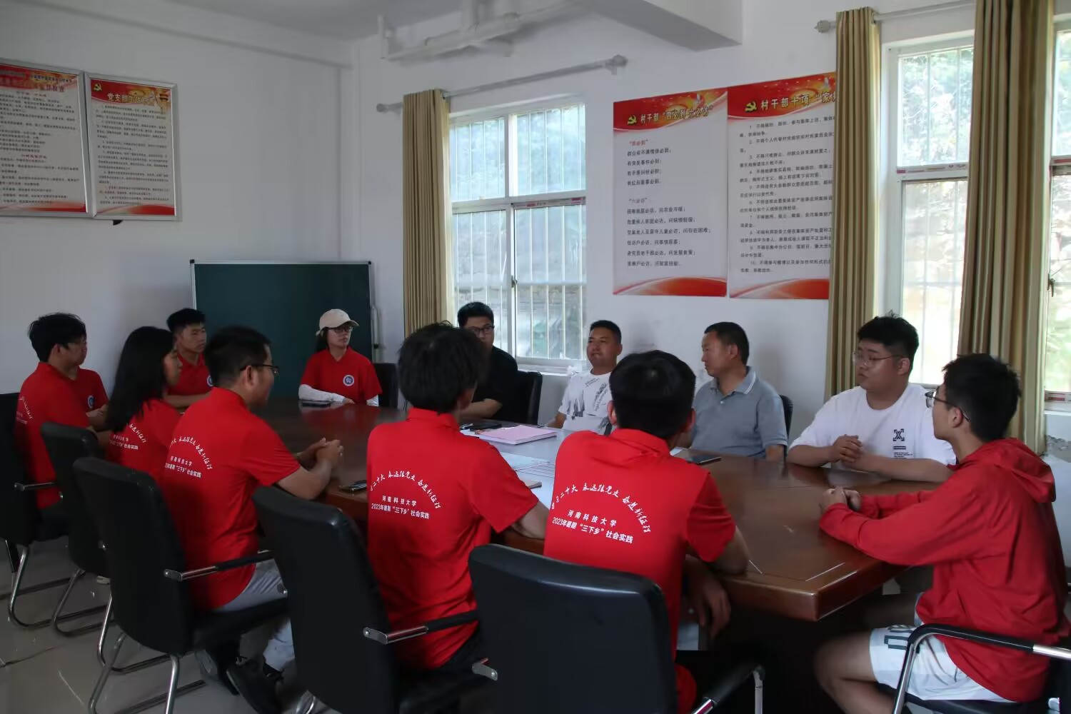 圖為實踐隊員在井溝村村委會與村書記進行有關井溝村鄉村振興討論交流的會議。 曹夢瑤 攝