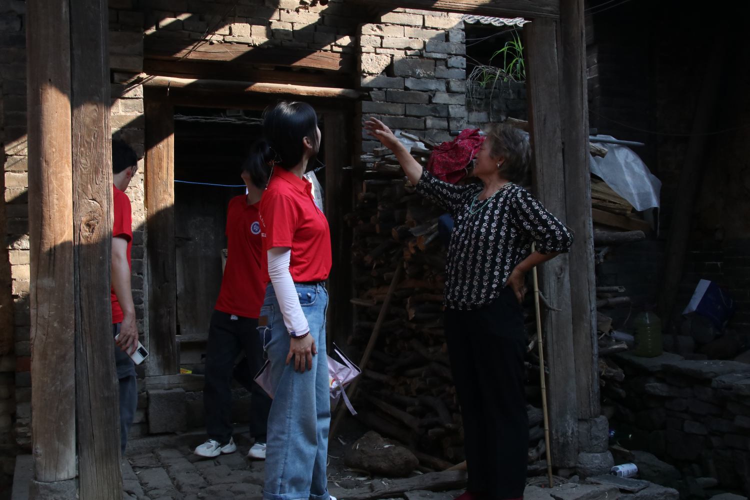 圖為實踐隊員在傳統村落進行訪談,大家向爺爺奶奶詢問有關建筑的發展歷程及鄉風村史,奶奶均細致耐心地解答大家的問題。 曹夢瑤 攝