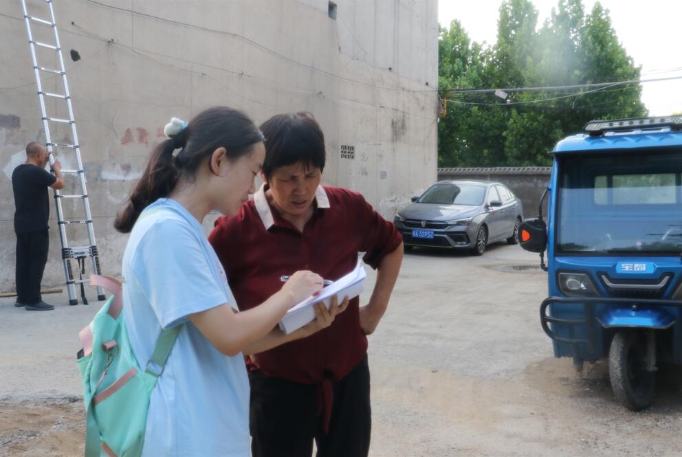 本圖為團隊成員走進河北高邑的街頭,向當地居民了解當地政府的環境治理政策,以及了解環境治理對于居民生活環境的影響,并深入調研了當地政府環境治理措施所存在的問題。