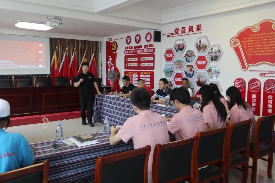 圖為 村支書(shū)蘭世杰為宣講團(tuán)團(tuán)員講解畬歌 在畬歌傳承人雷建銀的講解下,實(shí)踐團(tuán)隊(duì)員了解到在當(dāng)?shù)氐暮芏嗪⒆右呀?jīng)不會(huì)說(shuō)畬語(yǔ),教學(xué)有一定難度。教學(xué)的畬歌都是傳統(tǒng)的固定畬歌,但畬歌其實(shí)更多的是一種即興創(chuàng)作,雷老師講到自己創(chuàng)作畬歌時(shí)更多的是根據(jù)時(shí)代的發(fā)展都有著不同的變化,近些年有著鄉(xiāng)村振興,黨建等內(nèi)容的畬歌創(chuàng)作。包括鄉(xiāng)村振興也給畬歌的發(fā)展有帶來(lái)一定機(jī)遇。提到曾經(jīng)做過(guò)的好人好事,雷老師談到“不管什么事總有人要去做,都要有一個(gè)開(kāi)頭的”還說(shuō)做人不僅要有技藝更要有品德。但同時(shí)他也談到,當(dāng)下的一些畬歌比賽很少有年輕面孔的出現(xiàn),包括在學(xué)校的教學(xué)中,其實(shí)結(jié)束課程后,很多學(xué)生也就忘記了。畬族沒(méi)有文字,畬族現(xiàn)在的小孩也很少有會(huì)說(shuō)畬語(yǔ)的,這是畬歌傳承現(xiàn)在面臨最大的問(wèn)題。