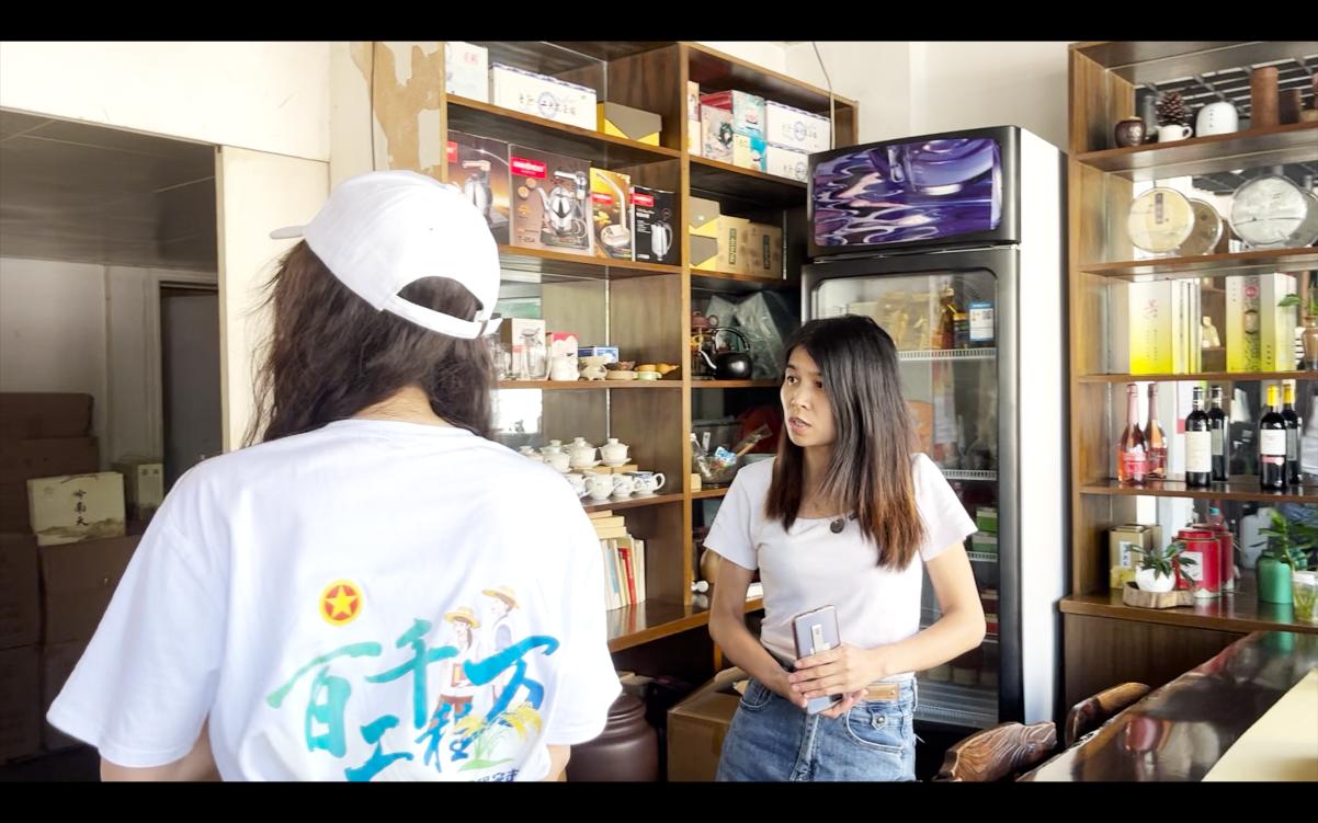 圖為茶香富源隊成員采訪小茶鋪經營者。通訊員 方涇鍇 供圖