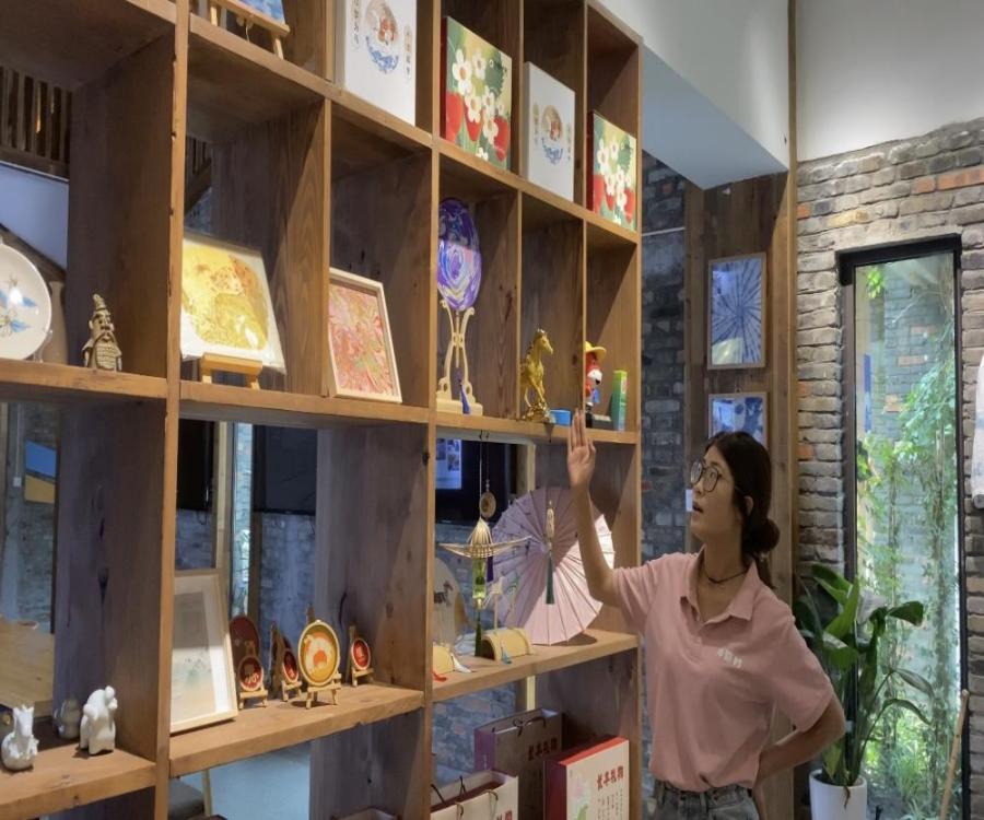 圖為馬郢接待人員向我們介紹馬郢村的手工品