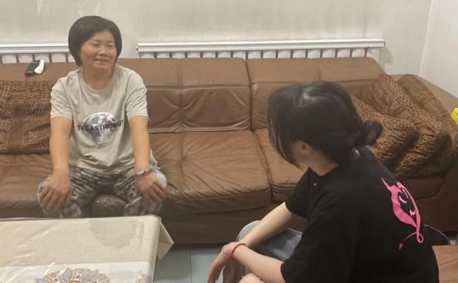 圖為實(shí)踐團(tuán)成員與老人家屬探討緩解老年低頭族的問題
