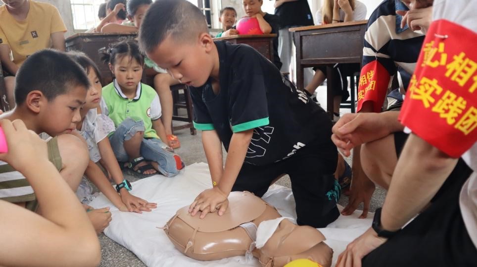 這個夏天,為響應國家“投身鄉村振興,助力健康中國”的號召,在中南大學校團委的指導下,中南大學湘雅醫學院“醫伴童心”團隊圍繞“青春建功,實踐鑄魂”主題赴湖南省郴州市臨武縣南強鎮兩廣村開展了為期5天的“三營融合”素質教育科普系列活動。此次活動,團隊立足醫學專業特色,針對臨武縣兩廣村兒童急救知識缺乏現狀,開展以急救知識為主題的科普互動課堂,通過科學化、系統化、實際化的守護方案開展急救科普,帶領孩子們共尋拯救生命的奧秘,提高孩子們應對突發意外情況的能力,增強他們的安全意識和自救互救能力,為多彩假期保駕護航。