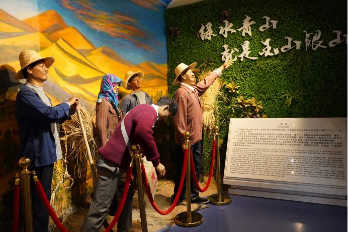 隨后,實踐團成員來到了六老漢治沙紀念館。步入紀念館,映入眼簾的便是治沙六老漢栩栩如生的形象雕塑。他們精神矍鑠,動作堅定有力,在治沙路上迎難而上,矢志不渝,揮灑著辛勤的汗水。