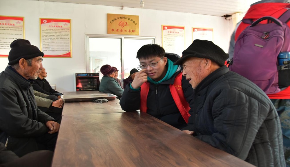 圖為實踐隊員與老人交流。 中國青年網通訊員 程思遠 供圖
