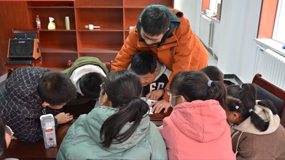 圖為實踐隊員在幫助學生們解答疑惑。中國青年網通訊員 張倉萍 供圖
