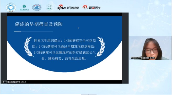 每年的2月4日是“世界癌癥日”,國(guó)際抗癌聯(lián)盟(UICC)設(shè)立這個(gè)紀(jì)念日,旨在加快癌癥研究、預(yù)防及治療等領(lǐng)域的進(jìn)展,提高公眾認(rèn)識(shí),促進(jìn)癌癥預(yù)防和治療。華中科技大學(xué)新聞與信息傳播學(xué)院“云上醫(yī)講”寒假社會(huì)實(shí)踐隊(duì)隊(duì)長(zhǎng)盧祈辰擔(dān)任主持。會(huì)議伊始,湖北省抗癌協(xié)會(huì)腫瘤心理學(xué)專委會(huì)主任委員、華中科技大學(xué)同濟(jì)醫(yī)學(xué)院附屬協(xié)和醫(yī)院胡建莉主任醫(yī)師致辭。胡建莉主任指出,整合衛(wèi)生資源,醫(yī)療人人共享,踐行健康的生活方式,能有效降低癌癥的風(fēng)險(xiǎn)。癌細(xì)胞最怕什么、癌細(xì)胞最愛什么,本次直播將為聽眾揭曉答案。